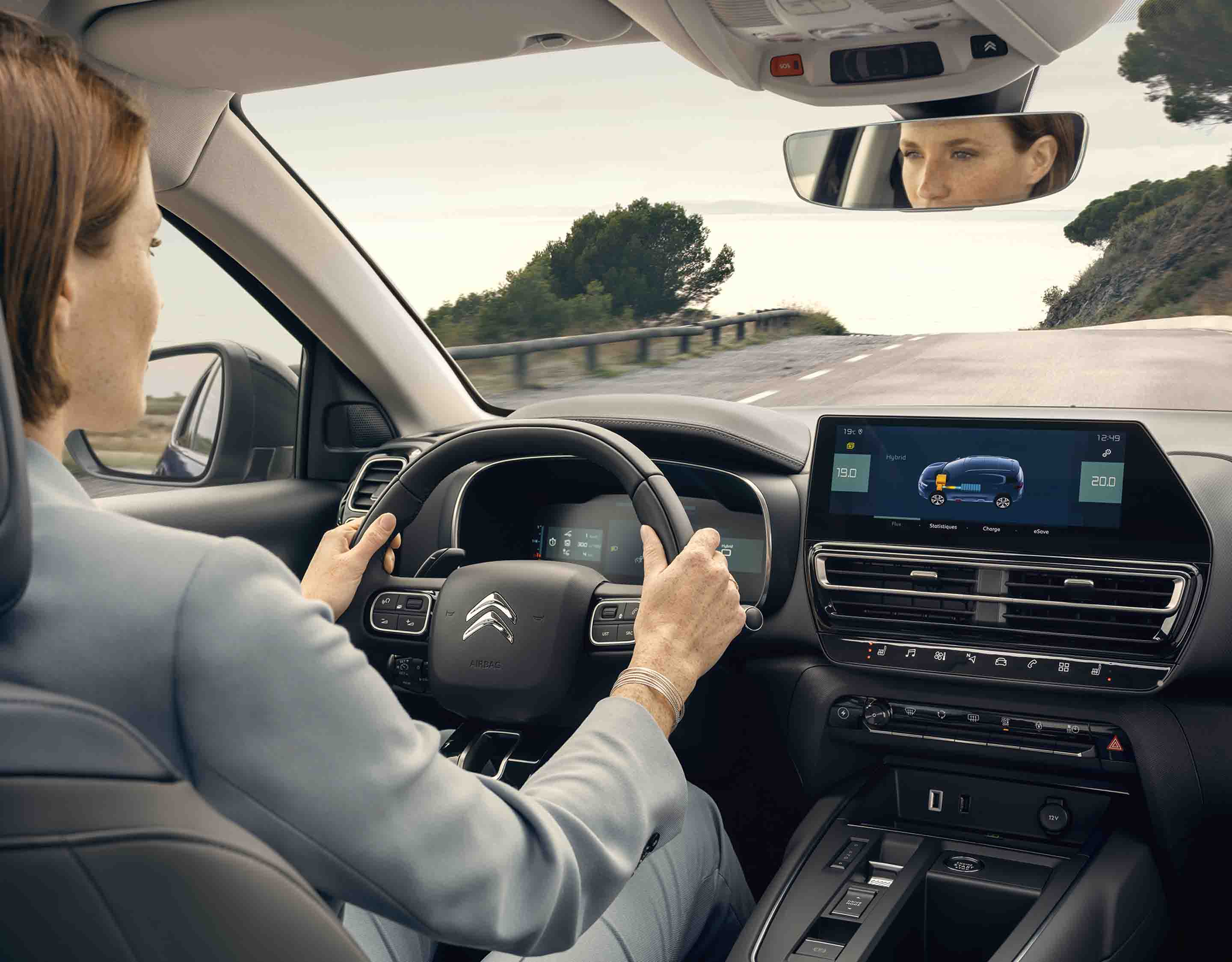 Naujojo Citroën C5 Aircross įkraunamojo hibrido centrinėje konsolėje įrengta rankenėlė leidžia pasirinkti vieną iš trijų važiavimo režimų: . Elektrinį: 100 proc. vien elektra varomas automobilis gali išvystyti iki 135 km/val. greitį. Pasirinkę elektros režimą, važiuosite itin sklandžiai ir be jokio triukšmo. Didžiausias viena įkrova įveikiamas atstumas siekia iki 55 km (pagal WLTP bandymų ciklą). . Hibridinį: siekiant didžiausio našumo, automatiškai valdomas elektros ir vidaus degimo variklių veikimas. . Sportinį: elektros motorui veikiant drauge su benzininiu varikliu bendra hibridinės jėgainės išvystoma galia siekia 225 AG, o maksimalus sukimo momentas – 360 Nm.