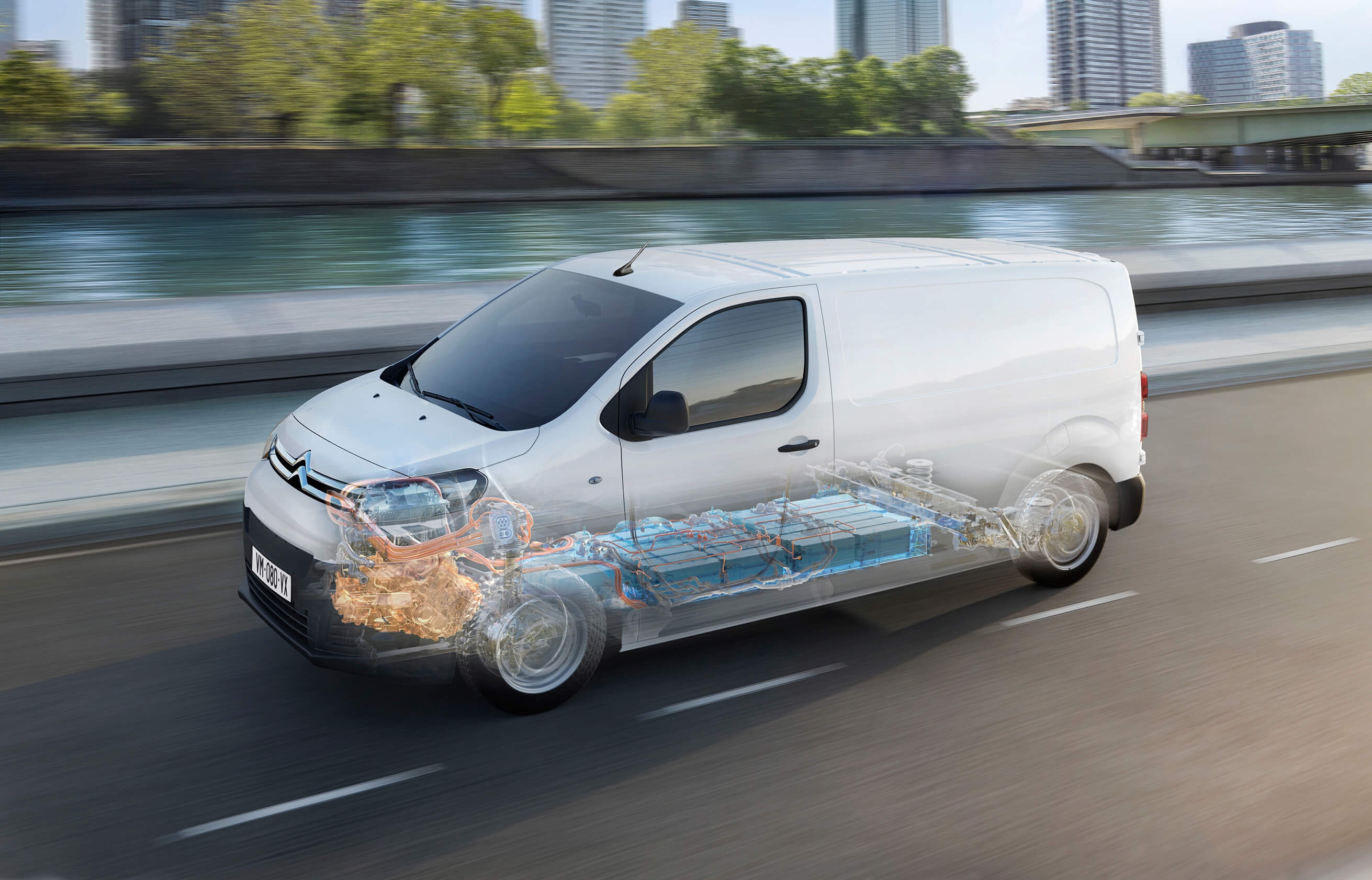 Для электрического Jumpy предлагается два аккумулятора с разной емкостью, гарантия на которые составляет 8 лет или 160 000 км. С аккумулятором 50 кВтч запас хода ë-Jumpy согласно стандартам WLTP достигает 230 км, а с аккумулятором 75 кВтч – 330 км. Возможности электродвигателя и запас хода зависят от выбранного режима вождения, который регулирует объем энергии, используемой при ускорении и сохраняемой при замедлении. Мощность двигателя составляет 100 кВт (136 л. с.) и крутящий момент – 260 Нм. Максимальная скорость электрофургона – 130 км/ч.